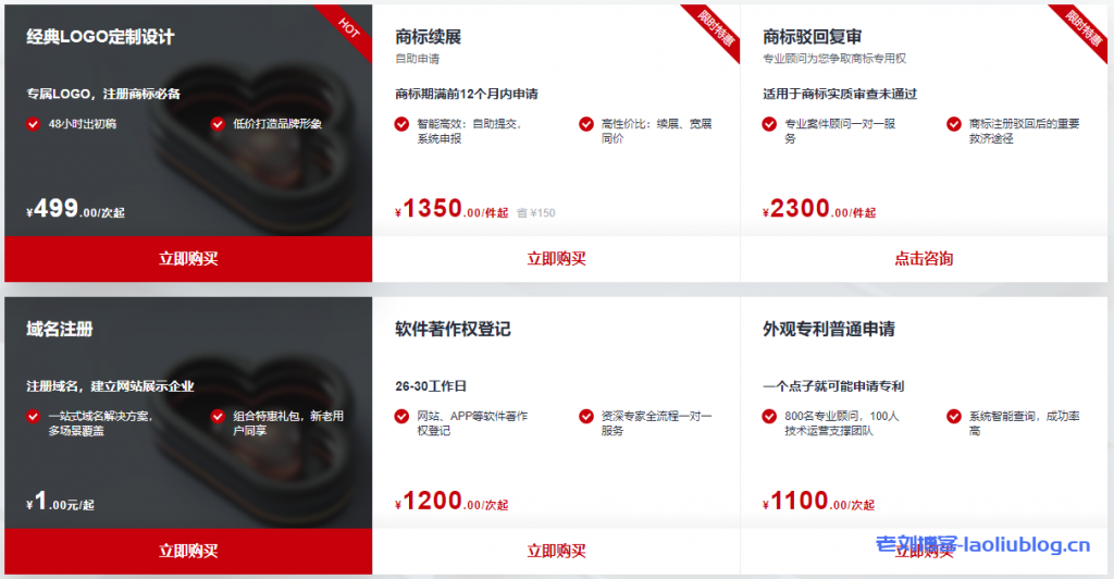 关于商标注册服务,老刘在前文《阿里云商标智能注册服务,审核后最快1分钟递交商标局》对阿里云的此服务已经有过介绍,其实不止阿里云,华为云也是有商标注册服务的,网友们可以根据个人喜好和具体服务感受以及产品价格去选择商家进行商标注册。