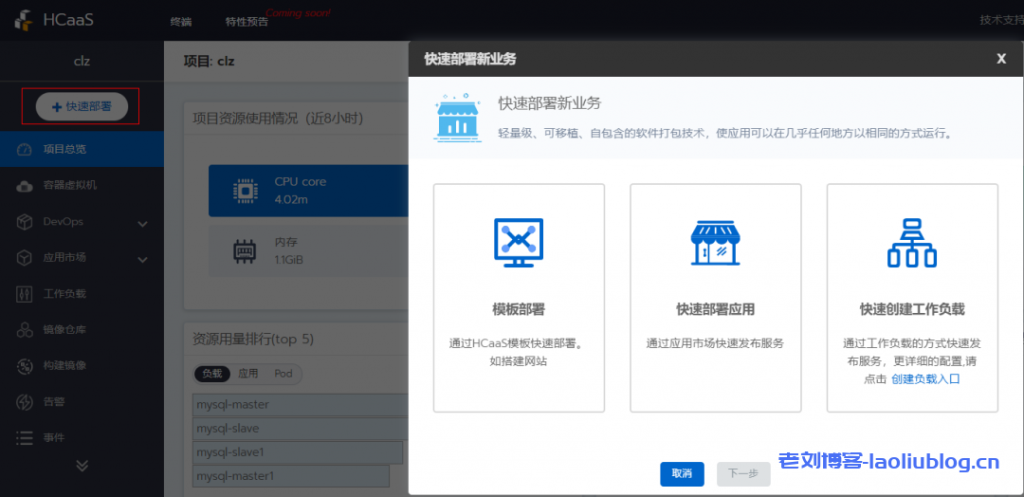 - 对于想转容器的用户,提供了镜像构建等一键容器化;通过快速部署按钮即可三步建站或部署应用。开箱即用的一套智能运维组件实现轻松运维