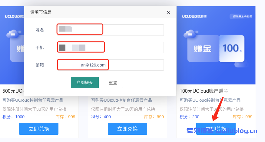 填写姓名、手机号和UCloud账号邮箱,下面是操作截图。