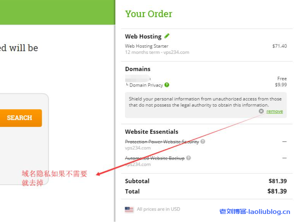 其中域名隐私如果不需要是可以去掉的,一般这个没有什么用,如下图所示: