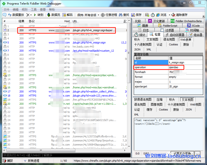 然后会出现信任证书,选择信任,最后点击确定即可。在软件运行的状态打开需要签到的网站,点击签到然后观察Fiddler抓到的请求。
