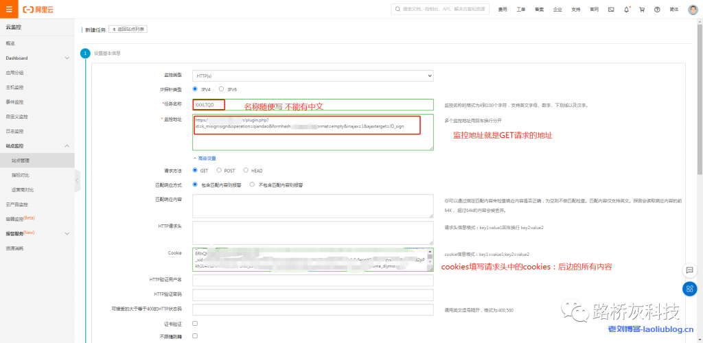 任务名称:随便填写,不能有中文。监控地址:FD中的请求地址。cookies:是请求头中的cookies,向下翻,监控频率选择60分钟。