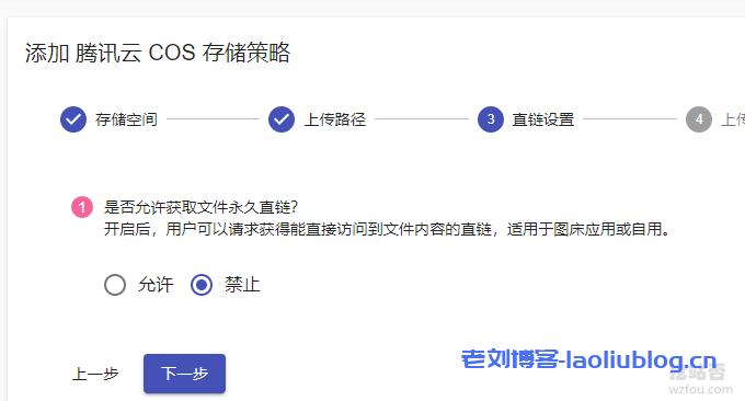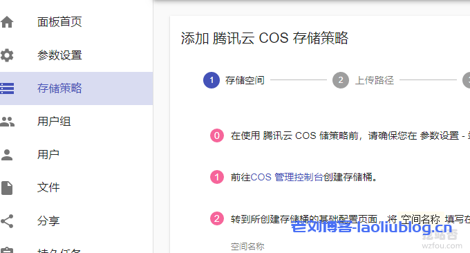 然后在“存储策略”中选择腾讯云COS,根据页面提示一步一步操作。