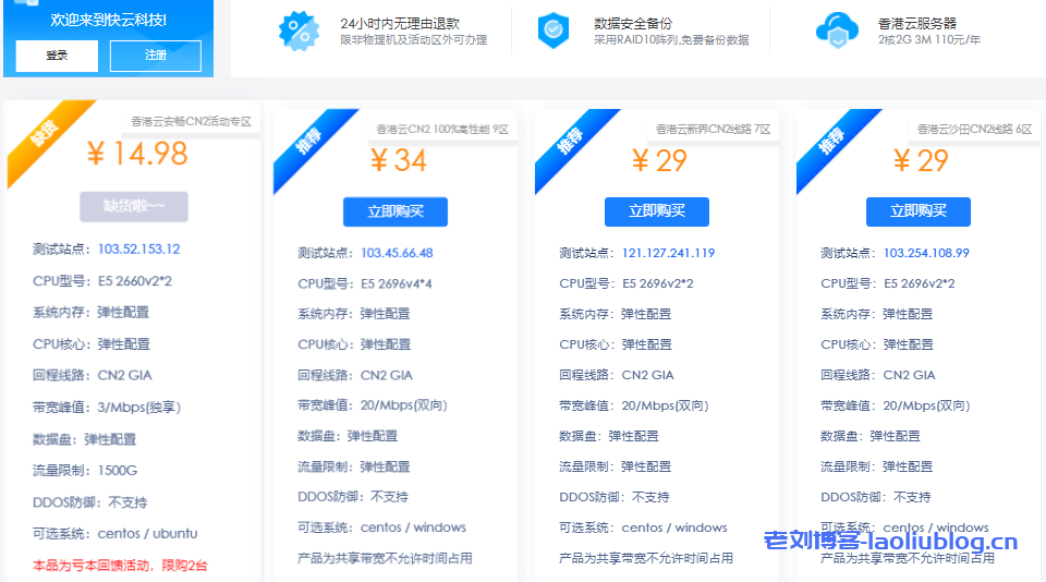 想看看快云科技怎么样?快云科技好不好?看以下老刘博客的实测数据吧!商家提供了一台4核4G的套餐,E5-2696 V2的CPU,不能解锁流媒体。测评总结如下: