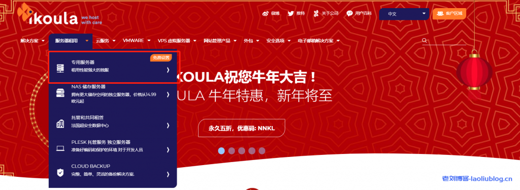进入上面的ikoula中文站首页,选择服务器租用-专用服务器: