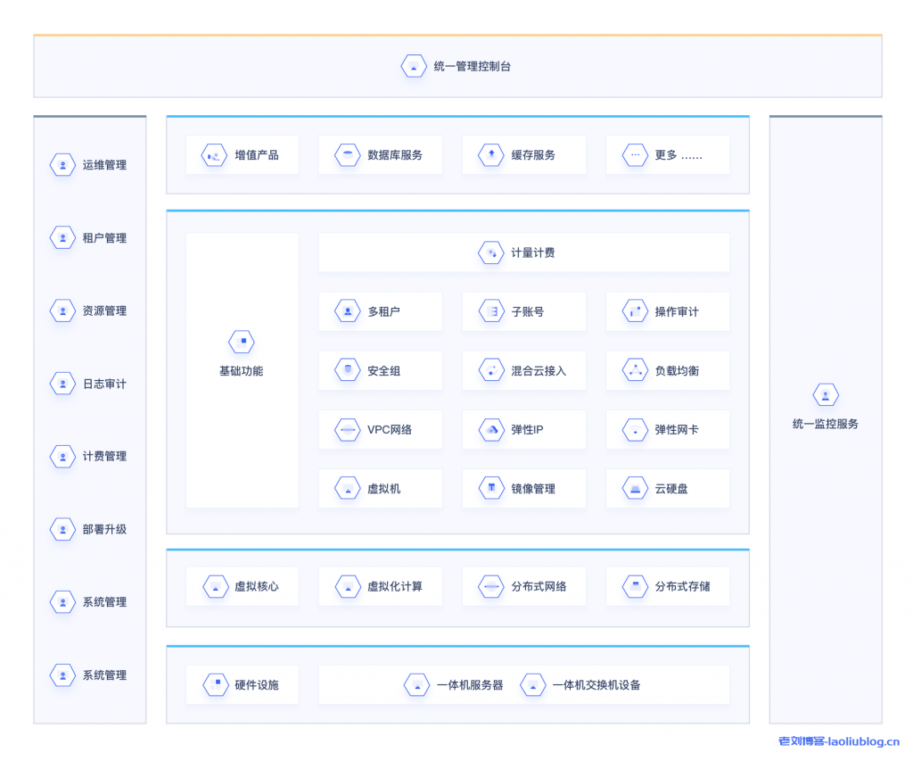UCloud优刻得昨日上线了UCloud混合云+自建机房|火爆预售 官方补贴活动中针对UCloud企业私有云UCloudStack产品作了介绍,老刘博客本篇文章分享给大家有关UCloud企业私有云UCloudStack产品优势、体系、架构&超融合一体机UHyperBox机型和交付方式。