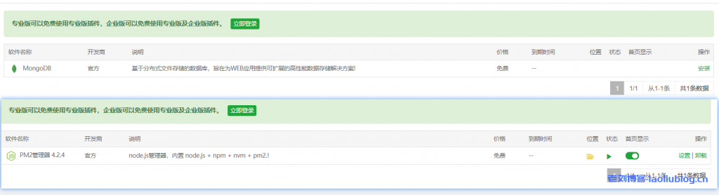 1)进入宝塔软件商店,安装PM2管理器和MongoDB: