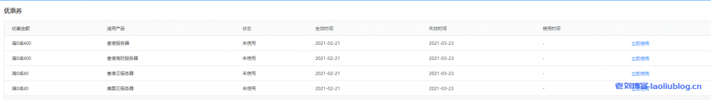 华纳云优惠券查看地址:https://www.hncloud.com/member/tickets