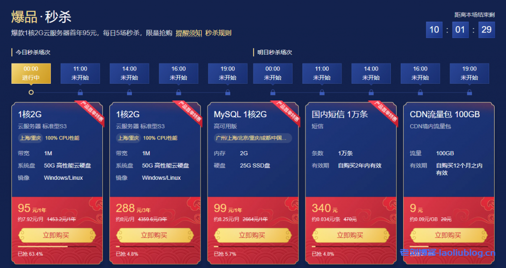 腾讯云2021新春采购节·主会场爆品·秒杀专区:爆款1核2G云服务器首年95元,每日5场秒杀,限量抢购。该服务器为腾讯云标准型S3云服务器,带宽1M,系统盘50G高性能云硬盘,机房可选上海或重庆,100% CPU性能,前往秒杀>>