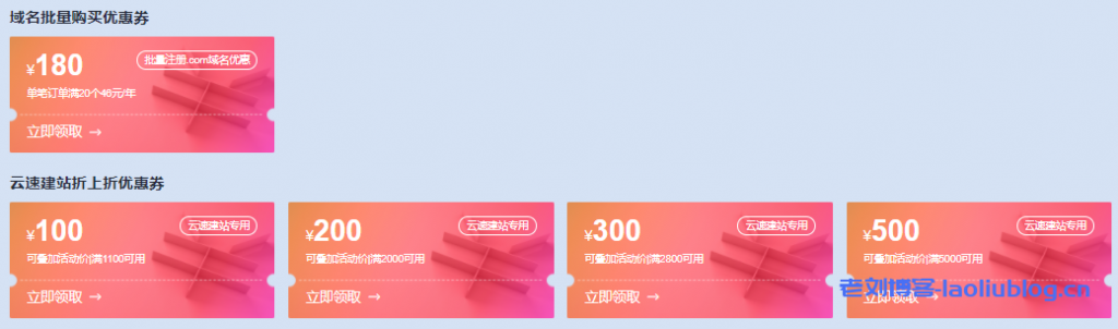 域名单笔订单满20个,即享.com 46元/个,云速建站领券叠加低至3.3折活动规则