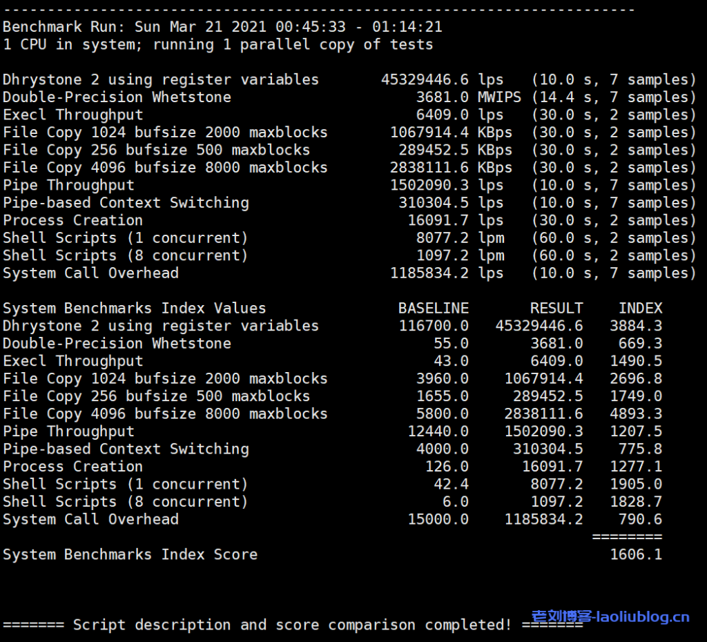 UnixBench跑分可以看出云服务器综合性能,嫌测试麻烦的朋友拿到一台服务器后,可以直接跑个UnixBench看下机器整体情况,结合商家描述信息(这个基本不会错),可以确定要不要买了。