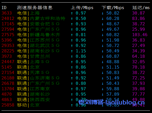 上传可跑满1Mbps,下载速度在50Mbps左右,延迟基本都在两位数。