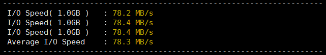 I/O读写速度78.3MB/s,性能一般,不过稳定。