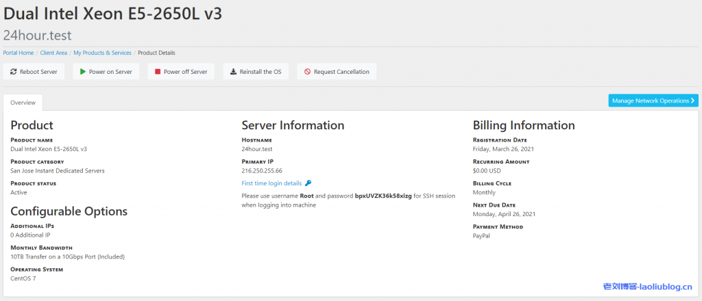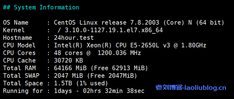 最近SpinServers推出了美国圣何塞即时专用服务器,具体参见《spinservers美国圣何塞高配服务器Dual Intel Xeon E5-2650L V3 24核48线程64G内存1.6TB SSD硬盘以及10Gbps端口带宽10TB月流量仅需$109/月》,老刘博客也选了Dual Intel Xeon E5-2650L v3(GTT线路24核64G内存 1.6TB SSD硬盘 10Gbps带宽)进行了性能测评,供朋友们参考。