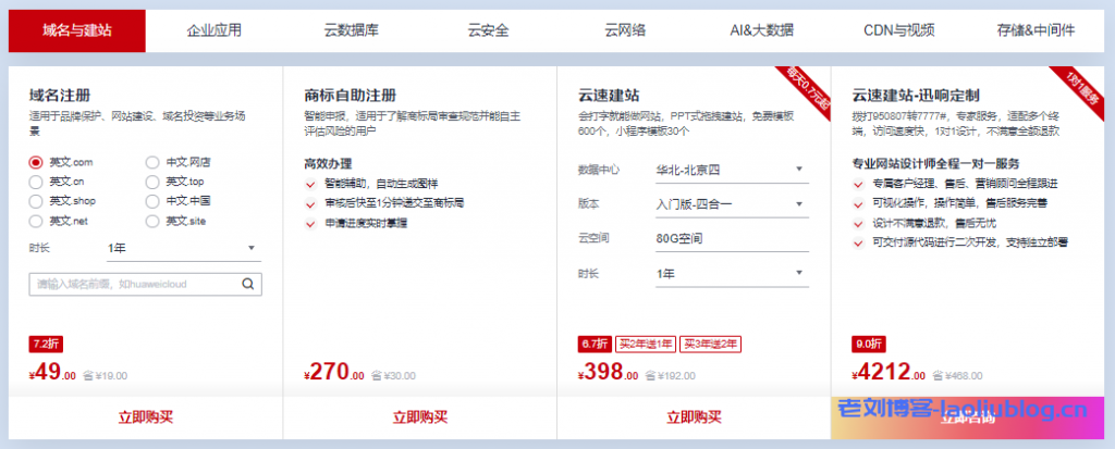 华为云怎么样?华为云好不好?大名鼎鼎的华为云,老刘博客就不过多介绍了。4月1日起,华为云精选了30+云产品并上线普惠上云,精选专区,活动名称:云上优选 特惠来袭,活动分为云服务器专区、用户领券专区和精选产品专区。如1核2G内存1M带宽云耀云服务器新用户首年256.98元(限购3台),加432元换购价值1080元主机安全企业版。
