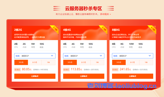 | 2核4G | BGP5M独享 | 50G高效云硬盘 | 河南洛阳BGP线路超低延迟 | 59/月 | 168/季 | 590/年 |