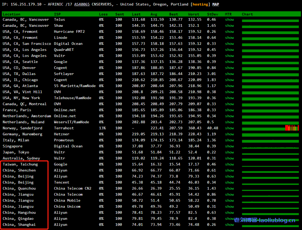 VoLLCloud网络ping测试:http://ping.pe/156.251.179.10,国内不丢包: