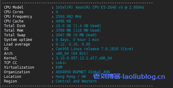 配置信息与官方描述一致。采用KVM虚拟化比较不错!