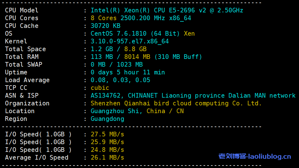 云服务器配置信息及IO性能测试