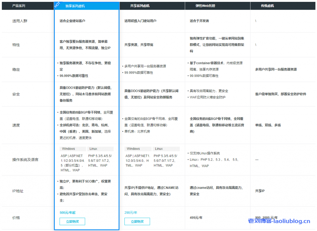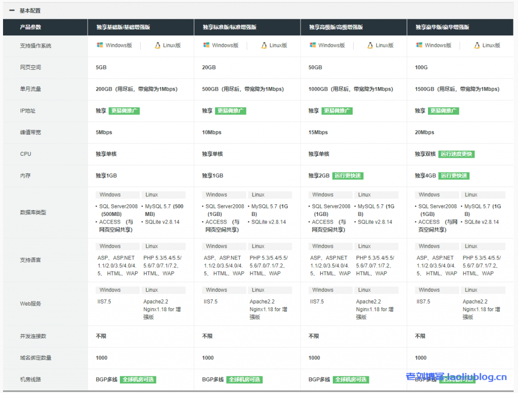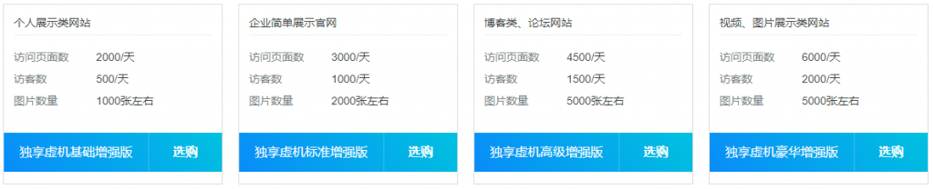 | 个人入门建站 | 适合初创型中小企业网站 | 适合企业、政府官网、社区网站 | 适合电商、视频、团购类网站 |