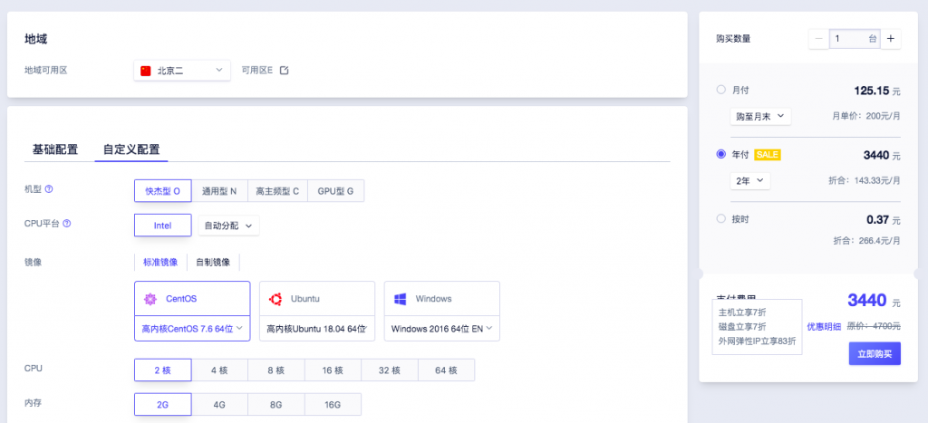 1、2020年5月15日起,云主机支持2年7折、3年5折将面向所有用户开放,原有的1年83折优惠策略维持不变;