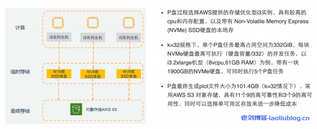 - 第二是使用Amazon Elastic Block Store (Amazon EBS)/实例存储NVMe,AWS提供读写能力强、大容量的硬盘,用作播种和临时存储。