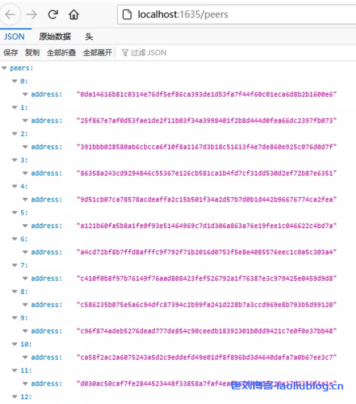查看连接的节点数,输入:http://localhost:1635/peers,火狐浏览器显示结果比较直观。方便查看。