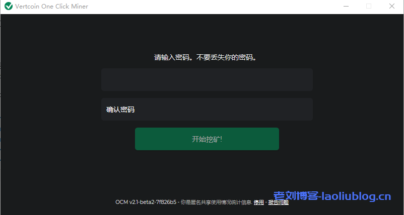 2.下载好之后解压,打开exe,就可以直接看见一个密码设置界面。设置完成后,它就会开始自动继续安装,检测环境并且安装挖矿进程,如果在环境检测中发现不能挖,那就说明这台电脑不能用于挖矿。
