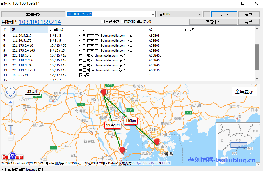 然后我们看看特网云路由线路,先看看去程,如下所示: