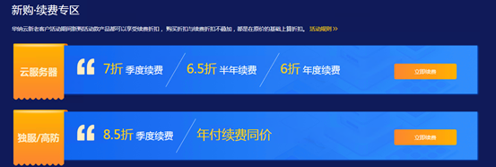 华纳云新老客户活动期间新购活动款产品都可以享受续费折扣(只限在活动期间购买活动款产品才可享受续费折扣),购买折扣与续费折扣不叠加,都是在原价的基础上算折扣。