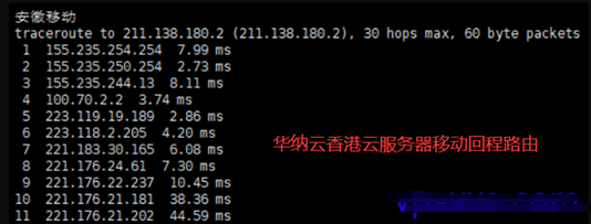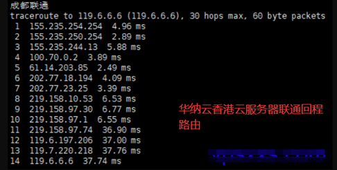 华纳云香港云服务器到国内的延迟40多ms,延迟很低,是三网直连的,下面看具体的三网路由: