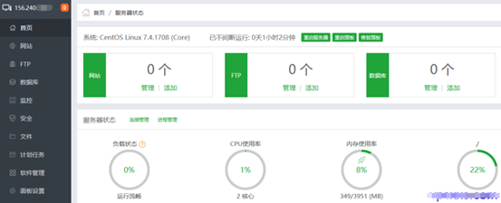 华纳云香港云服务器在安装宝塔面板并配置默认的LNMP环境之后,内存还有3.6G的剩余,硬盘只用了4.4GB,双核CPU再配上这么大的剩余内存,搭建网站的话硬件资源是非常富裕的。