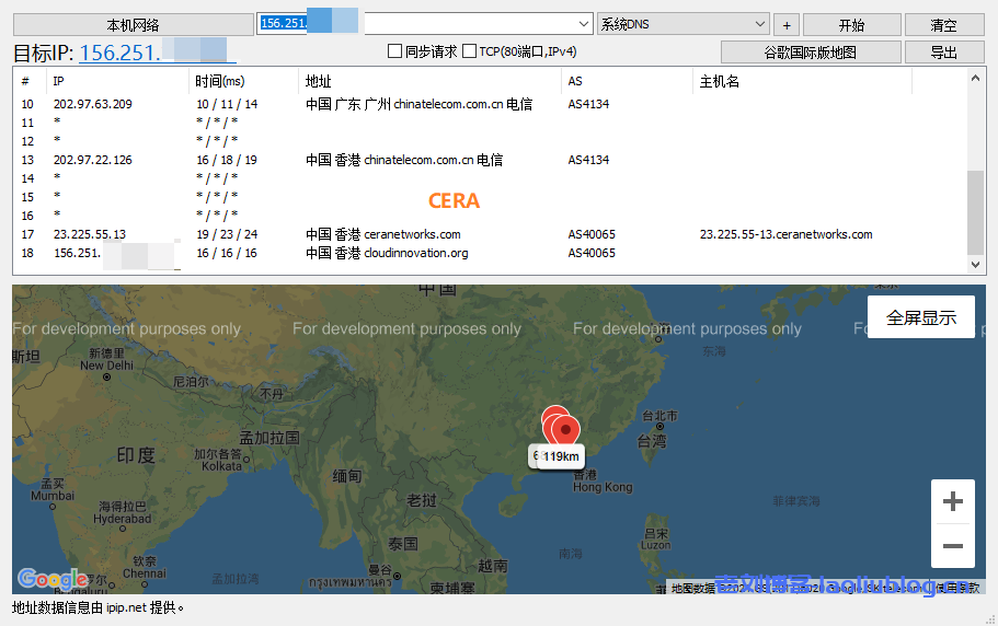 PINEPE延迟丢包测试:http://ping.pe/156.251.179.10