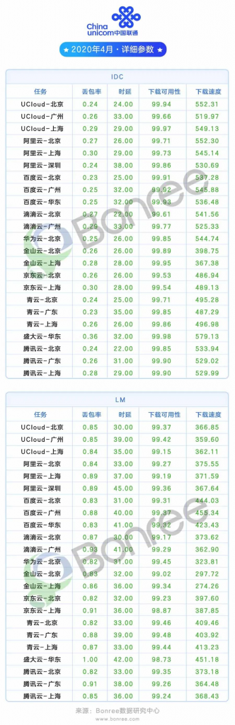 此榜主要反应在中国联通运营商覆盖下,各云平台在网络稳定和传输质量上的表现。
