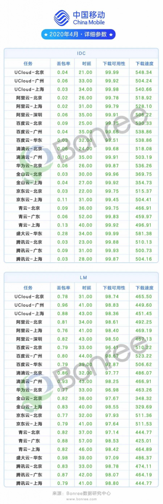 此榜主要反应在中国移动运营商覆盖下,各云平台在网络稳定和传输质量上的表现。