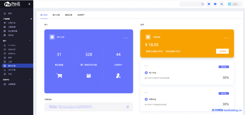 Pia云六月重新提高推广金额比例。将推广返利提高至30%,续费同样!