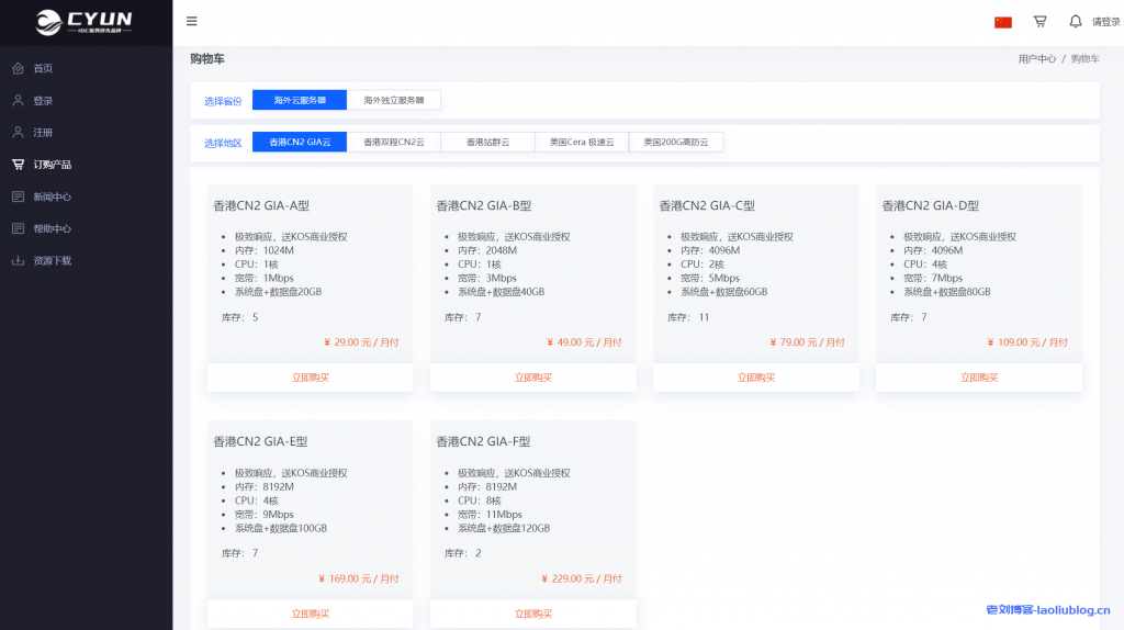 CYUN美国Cera极速云,三网回程CN2 GIA精品线路,高稳定,非近期市面上的cera联通特价线路可比,从第二款开始可选Windows系统: