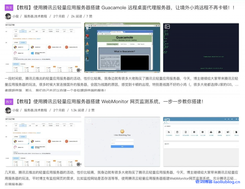 昨天是儿童节,腾讯云服务器公众号分享了一篇让老刘博客产生极大共鸣的文章《六一了,来看看小朋友是如何上云》,当然这篇文章多多少少应该有一些杜撰的成分,主要是推送腾讯云的轻量应用服务器Lighthouse产品。文章讲了一个00后小朋友(准确的来说应该是05后),从小学二年级开始迷上手机游戏,注册社交网站,被钓鱼链接骗钱,自建建站挂QQ,EMlog建站,推广博客被网络攻击,使用CDN加速和对象存储服务,使用FRP内网穿透,Fusion App搭建博客APP,搭建IDC网站卖VPS……很多人在惊呼后生可畏的同时也在感慨好像看到了过去的自己。